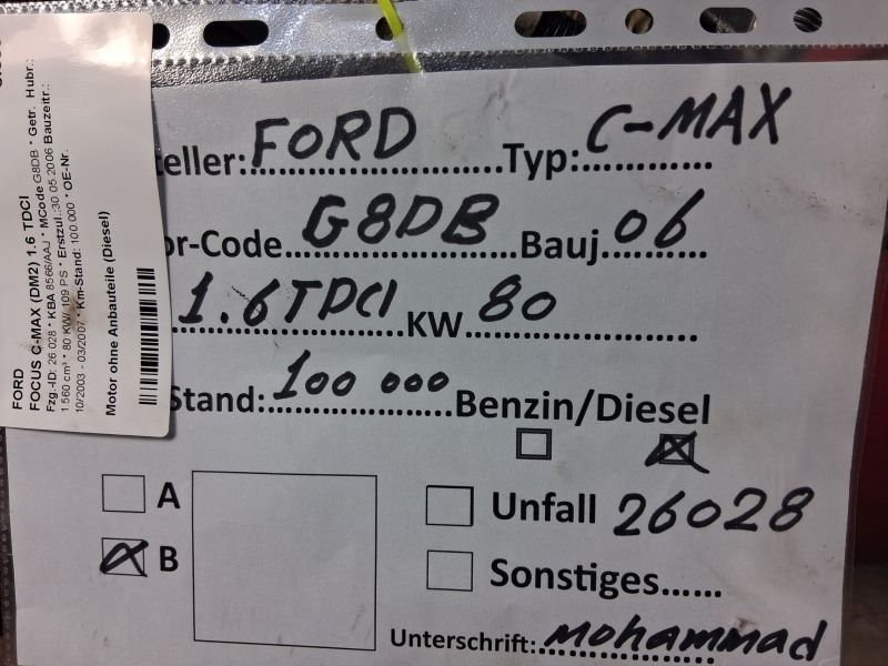 Motor ohne Anbauteile (Diesel) FORD FOCUS C-MAX (DM2) 1.6 TDCI