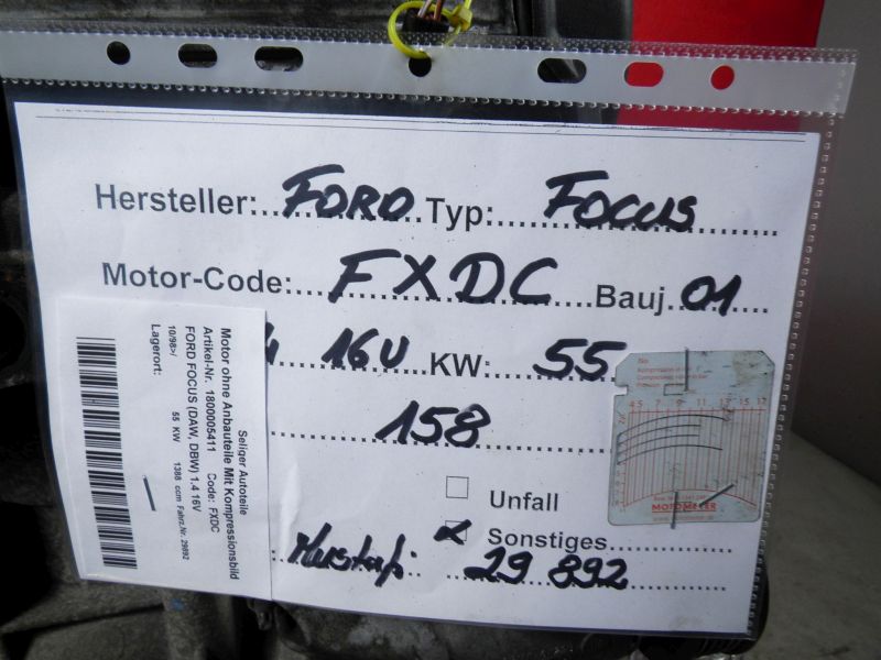 Motor ohne Anbauteile (Benzin) Mit KompressionsbildFORD FOCUS (DAW, DBW) 1.4 16V