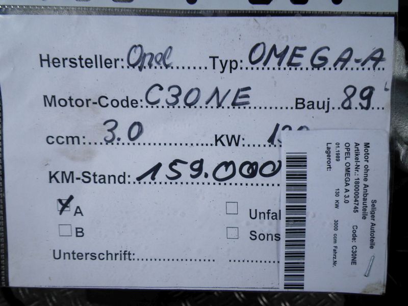 Motor ohne Anbauteile (Benzin) OPEL OMEGA A 3.0