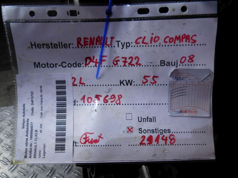 Motor ohne Anbauteile (Benzin) RENAULT CLIO II (B/C/B0/1_)