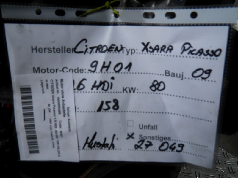 Motor ohne Anbauteile (Diesel) CITROEN Xsara Picasso 1.6 HDI 80 kW 109 PS (05