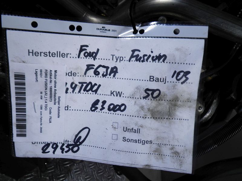 Motor ohne Anbauteile (Diesel) FORD FUSION (JU_) 1.4 TDCi