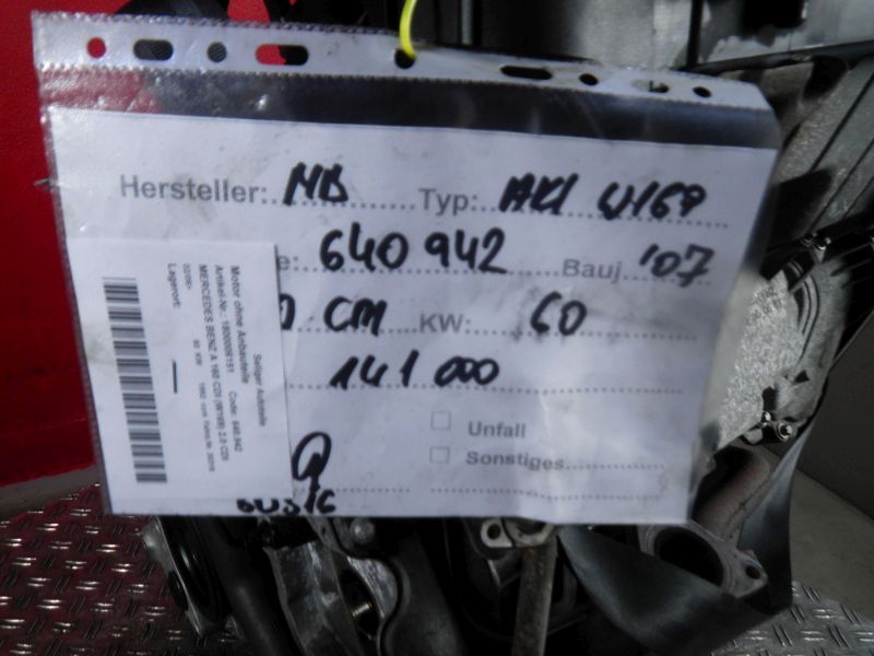 Motor ohne Anbauteile (Diesel) MERCEDES BENZ A 160 CDI (W169) 2.0 CDI