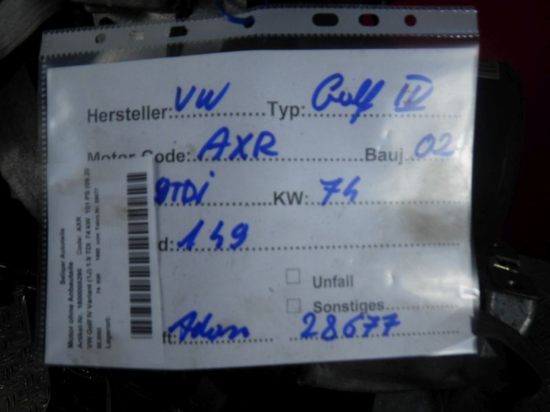 Motor ohne Anbauteile (Diesel) VOLKSWAGEN GOLF IV (1J1) 1.9 TDI