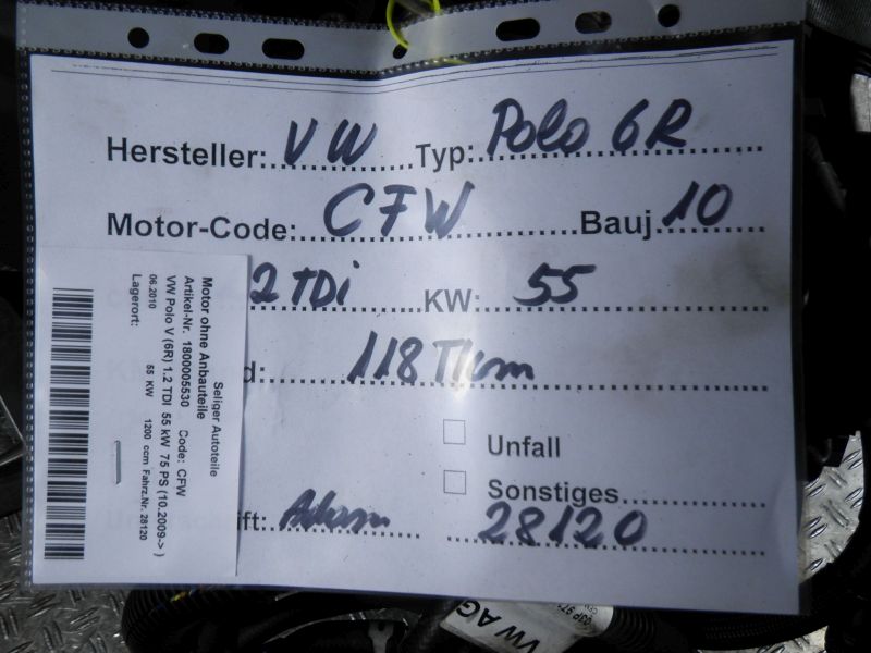 Motor ohne Anbauteile (Diesel) VW POLO