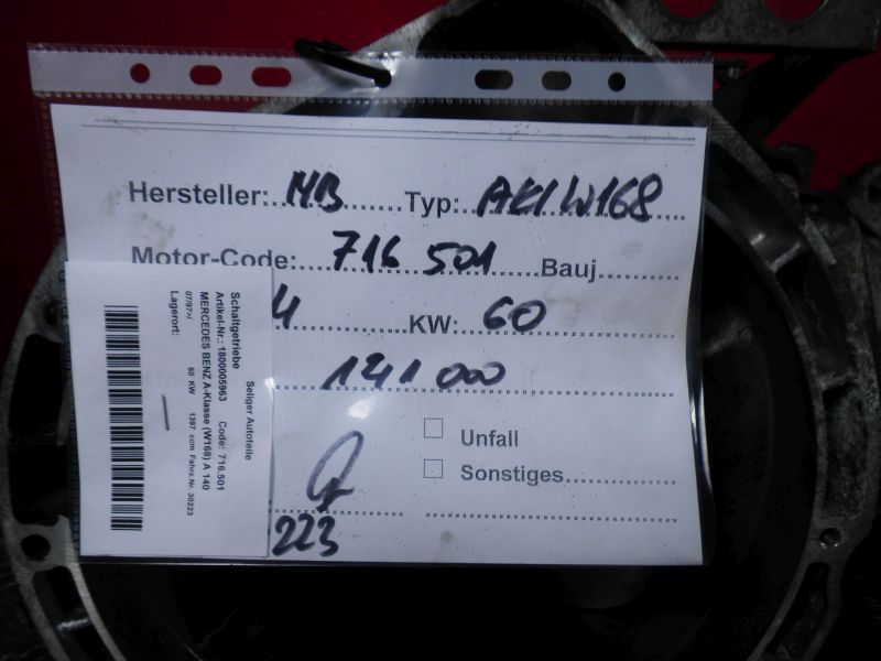 Schaltgetriebe MERCEDES BENZ A-Klasse (W168) A 140