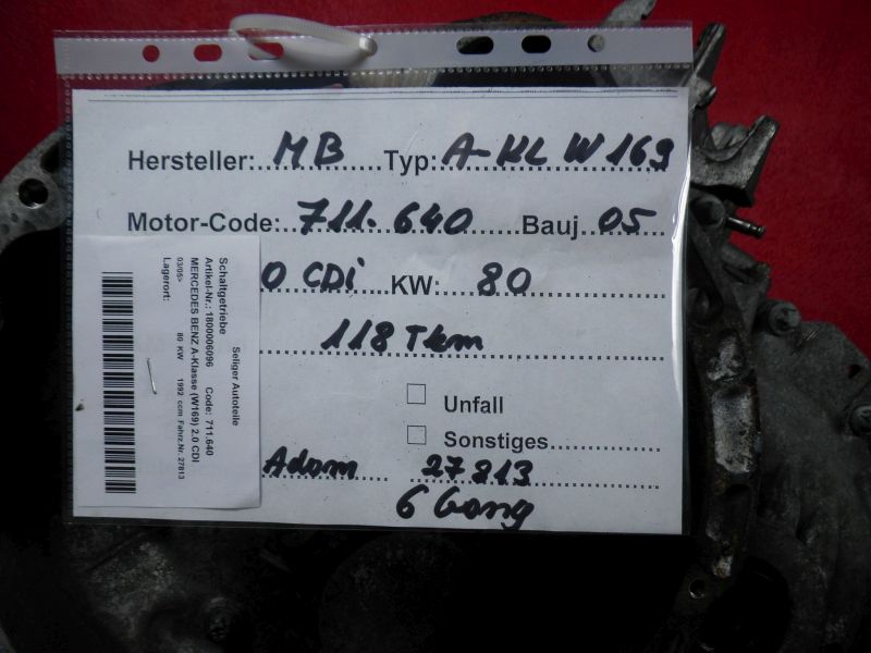 Schaltgetriebe MERCEDES BENZ A-Klasse (W169) 2.0 CDI
