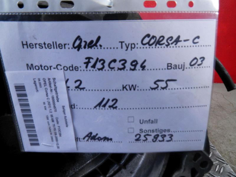 Schaltgetriebe OPEL Corsa C 1.2 55 kW 75 PS (09.2000-12.20