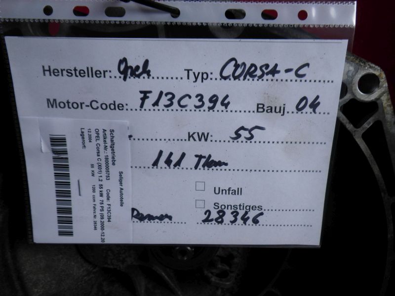 Schaltgetriebe OPEL Corsa C (X01) 1.2 55 kW 75 PS (09.2000