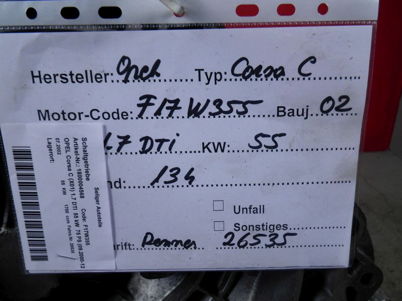 Schaltgetriebe OPEL Corsa C (X01) 1.7 DTI 55 kW 75 PS (09.