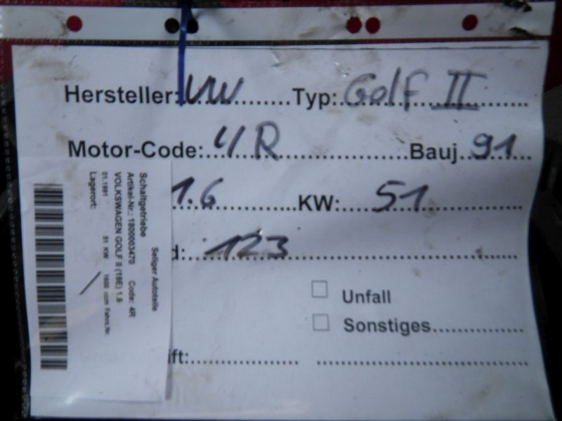 Schaltgetriebe VOLKSWAGEN GOLF II (19E) 1.6