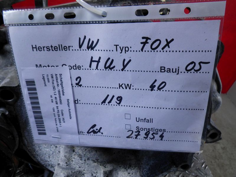 Schaltgetriebe VW Fox (5Z) 1.2 40 kW 54 PS (04.2005-> )