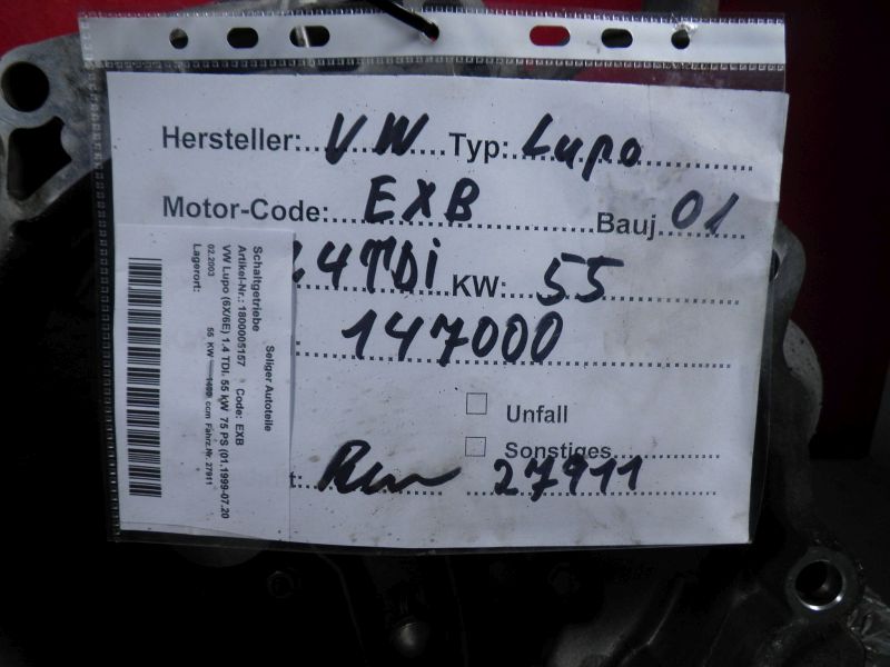 Schaltgetriebe VW Lupo (6X/6E) 1.4 TDI 55 kW 75 PS (01.1